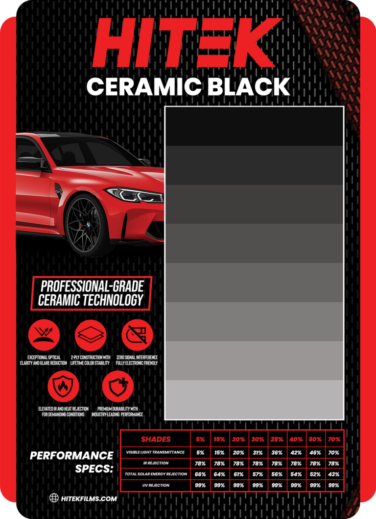 HITEK offers one of the most advanced automotive film lineups on the market. With eight premium series, we deliver solutions for every driver from classic style to cutting edge nano ceramic technology. All Films come with a nationwide warranty and are installed by certified professionals.