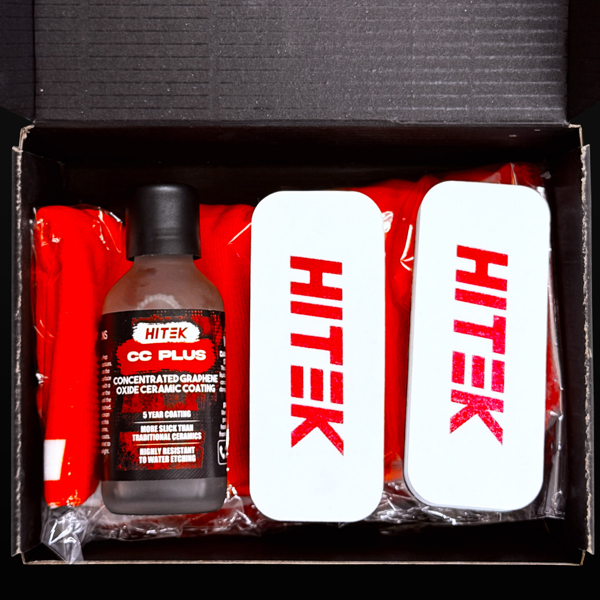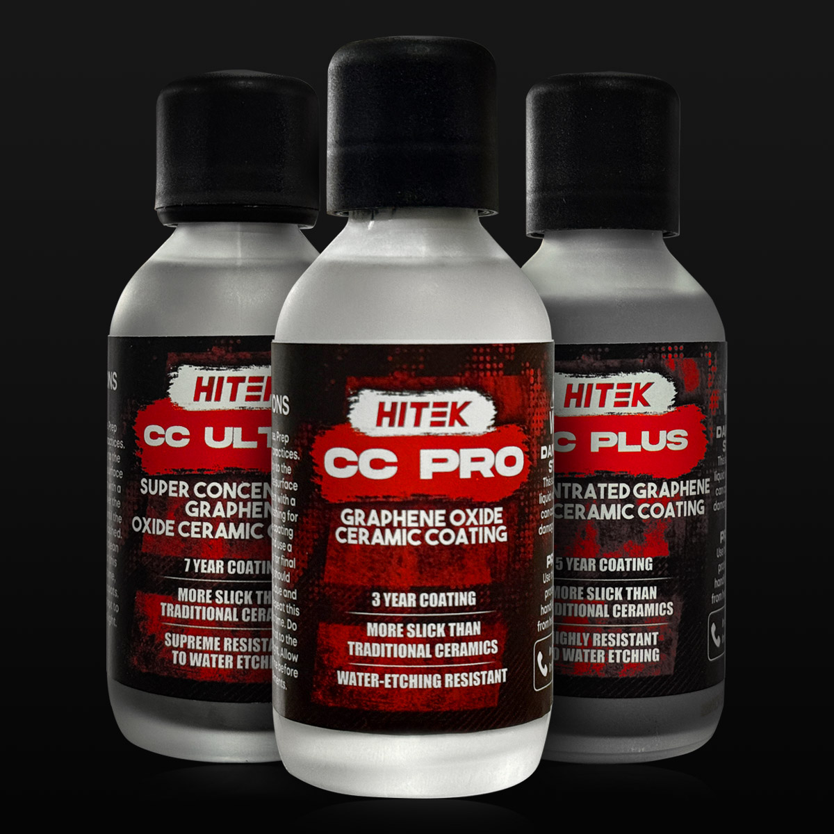 HITEK CC Plus Ceramic Coating offers long-lasting protection and a deep, glossy finish for automotive surfaces. Key benefits include: