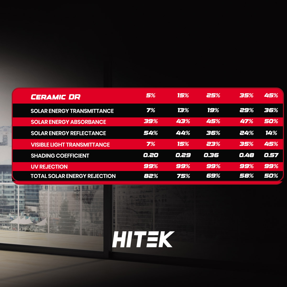 Visible Light Transmittance 7% 15% 23% 35% 45%