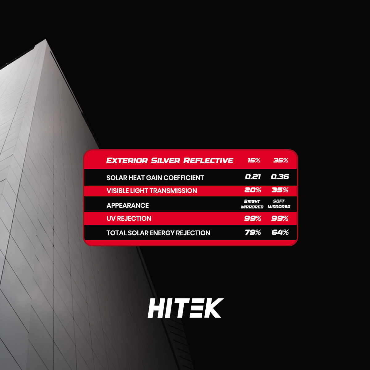 HITEK Exterior Silver Reflective Window Film Series