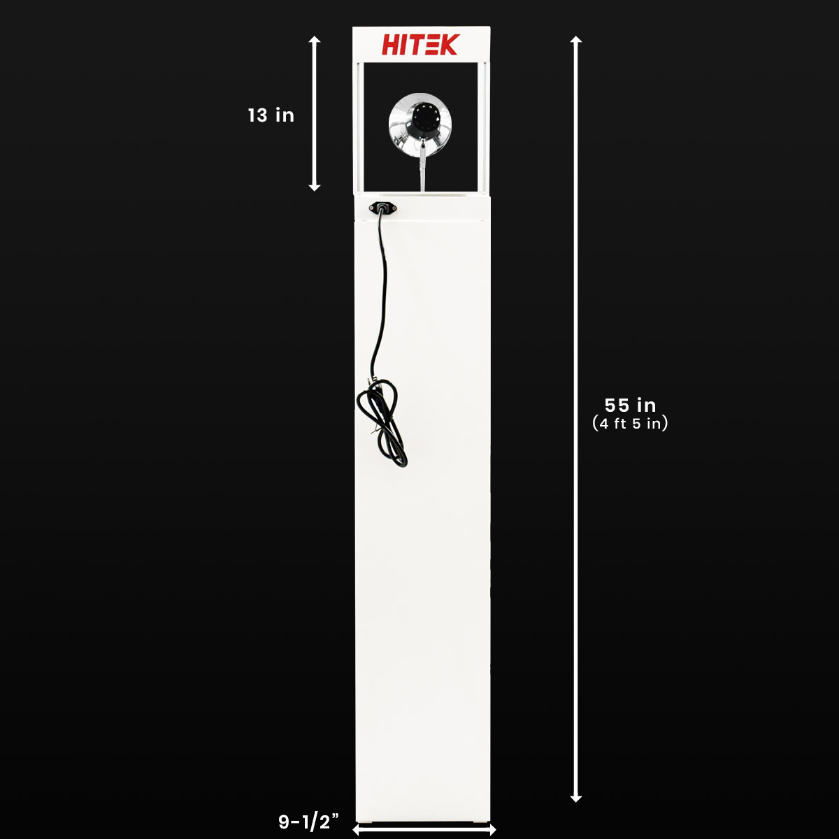 The rotatable heat box comes with 4 removable glass inserts ready for the installation of your film lines and the heat lamp is set on a 2-minute timer so you don’t have to worry about a client leaving it running!