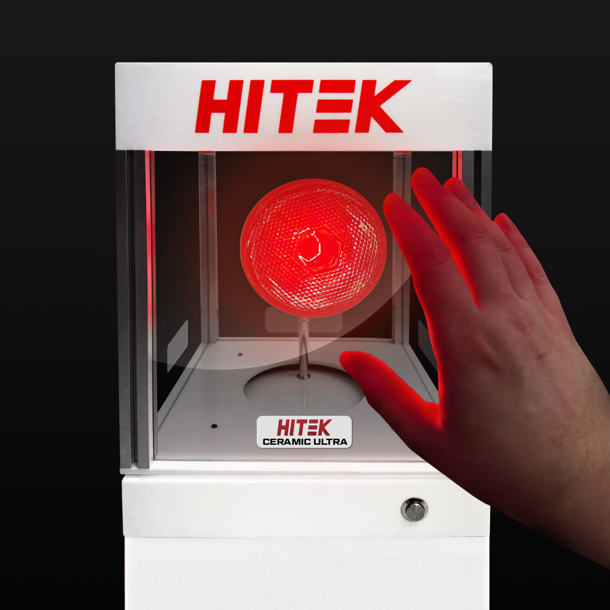 Demonstrate just how effective your films are at blocking out heat with this interactive rotatable heat box. The 250-watt infrared bulb simulates the heat from the sun so that your customers can experience the benefits of solar film firsthand as they rotate from bare glass to the heat-blocking film technologies you have installed.